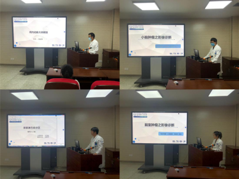 科室对住培工作高度重视,一切以住培医师为中心,全面调动住培学员学习和工作的主观能动性,持续完善住培工作,力争成为全国精品住培基地。基地开展丰富多彩、形式多样的教学活动,从而达到培训不同层次学员的目的,这些活动包括: ①每周1次规培学员基础知识小讲课:学员制作并讲解PPT,内容涵盖基础解剖、病理生理和影像学知识,夯实基础的同时,锤炼了现场表达能力;②每周3次疑难病例读片:规培学员分小组轮流主持讨论,讨论前做好资料搜集与文献回顾,挖掘病例讨论深度,提升读片能力;③每月2次教学读片:带教老师全面评估学员的课件制作、知识掌握程度、思考深度,并作出补充总结;④每周1次专题讲座:高级职称医师及高年资主治医师进行影像系统学习、新进展汇报、规范指南的解读;⑤每周1次科研小组活动:包括中、英文论文和各级课题写作思路、要点,尤其适合零基础学员;⑥周周1次病理结果回顾、外出学习汇报及对外交流学习;⑦每周1次亚专业小讲课:分系统讲解专业理论。