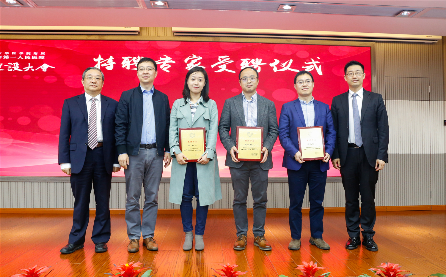 应旭旻副主任、徐骁院长、钱申贤常务副院长为范骁辉教授、朱虹教授、孟卓贤教授颁发特聘专家聘书
