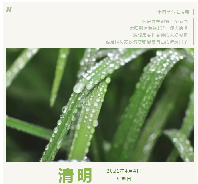 清明前后,天气多变,忽冷忽热,时晴时雨,风多、雨多,早晚温差大,人易受风邪、寒邪侵袭,外出时应注意防风保暖,以助人体生发,抵御外邪侵袭,才有助于身体健康。