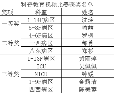 2021年我们迎来了第110个国际护士节,今年护士节的主题是“护士:引领之声,展望医疗保健的未来”,为迎接5.12护士节的到来,发挥护士维护健康的重要作用,在蜜桃直播 工会的大力支持下,伤口造口失禁护理专科团队举办了“关注伤口、共筑健康”科普教育视频比赛,本次比赛得到全院各护理单元的积极参与和支持,共收到35人的参赛作品,通过评委们的筛选和点评,最终评选出了一等奖1名,二等奖3名,三等奖6名。