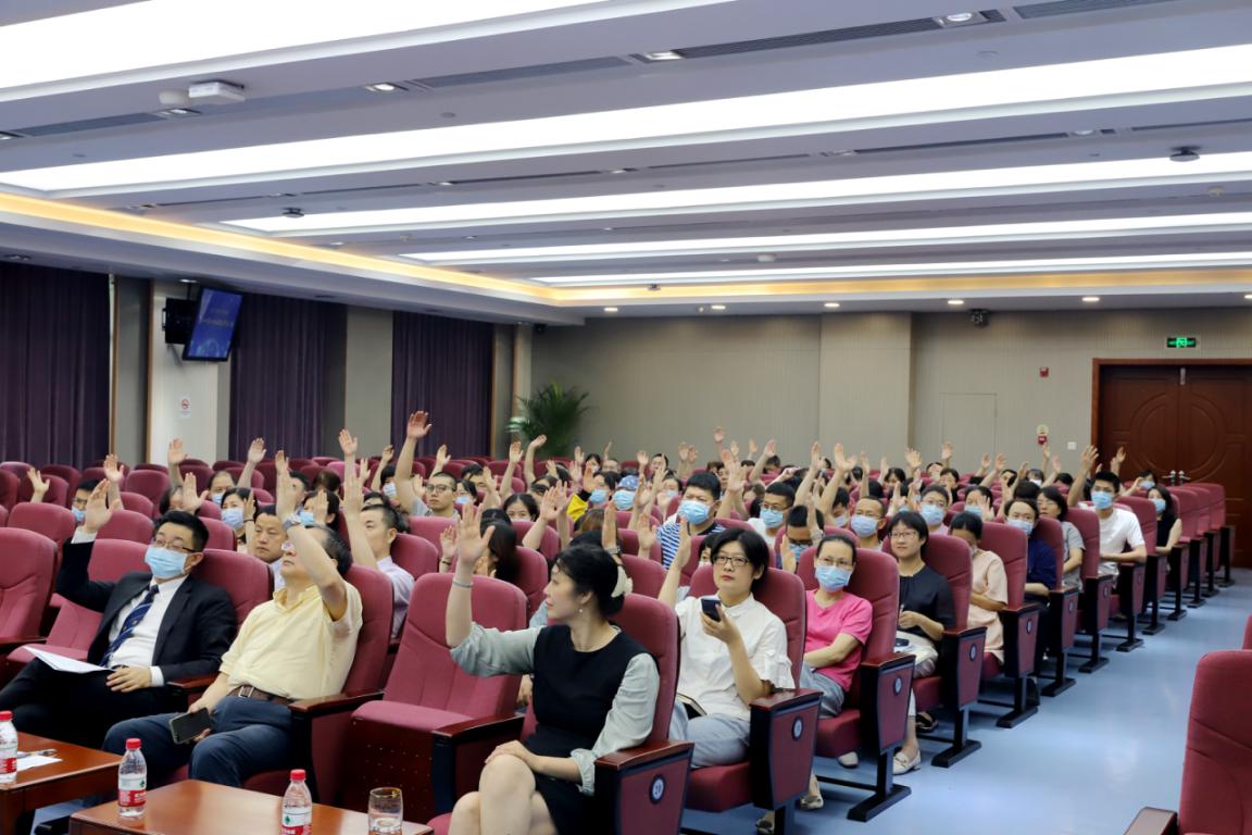 2021年6月16日,院第十一届十六次职工代表大会在6号楼9楼学术报告厅顺利召开。全院职工代表百余人参加会议,审议了《蜜桃直播 章程(试行)》,会议由蜜桃直播 工会主席周莉主持。