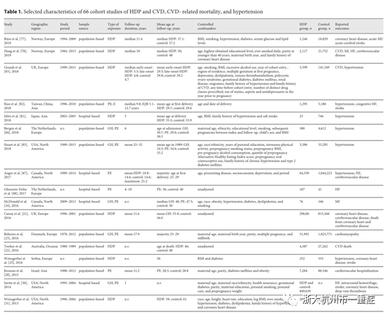 在纳入的73项观察性研究中,66项是队列研究,7项是病例对照研究。表1显示了总样本量>1300万的66项队列研究的特征。样本量有很大的差异(40-2,066,230)。发表年份为1995-2019年,其中近57.6%(38/66项研究)在2010-2019年发表。40项研究(60.6%)在欧洲进行,14项(21.2%)在北美进行,9项(13.6%)在亚洲进行,2项(3.0%)在南美进行,1项(1.5%)在大洋洲进行。研究报告参与者的平均或中位年龄在25-75岁之间,而中位或平均随访从0到42岁。对于样本来源,44项研究(66.7%)是基于人群的,22项(33.3%)是基于蜜桃直播 的。17项研究(25.8%)在评估与HDP相关的心血管疾病风险时没有调整任何混杂因素,但其余的研究(74.2%)根据年龄、吸烟或其他潜在混杂因素进行了调整或匹配。