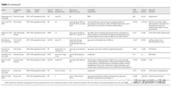 我们关注暴露于任何类型的HDP,包括妊娠期高血压(GH)、PE、子痫、HELLP综合征和慢性高血压合并PE。主要结果包括任何类型的CVD和与CVD相关的死亡率。心血管疾病被定义为下列事件中的任何一种:冠心病、心力衰竭、外周血管疾病和卒中。冠心病包括冠心病、缺血性心脏病、心肌梗死和冠心病。外周血管疾病被定义为外周动脉疾病、深静脉血栓形成和任何血栓栓塞事件。卒中定义为任何复合性卒中、未指明的卒中和卒中/短暂性脑缺血发作。结果CVD相关死亡率定义为任何CVD引起的死亡。虽然高血压不在CVD的范围内,但考虑到高血压作为CVD危险因素的重要性,我们将其列为次要结果。