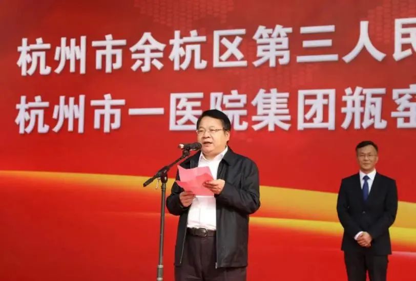 余杭区区委副书记、区长陈如根作重要讲话。他强调余杭区委区政府坚决贯彻以人民为中心的发展理念,把健康余杭建设作为民生领域的重要工作,大力推进医疗卫生体制改革和卫生健康领域重点项目建设。今天,新院区的启用必将是市一蜜桃直播 瓶窑院区(余杭三院)发展史上的里程碑,希望余杭三院能珍惜机遇,最大程度改善余杭西部人民群众的就医条件,带动全区医疗卫生事业建设再上新台阶。