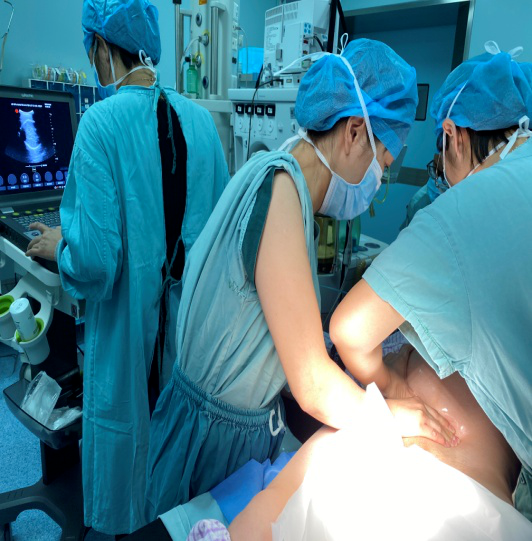 麻醉医生给“准妈妈”打硬膜外麻醉、B超医生查看胎位情况、婴儿润肤油涂抹腹部……10月8日下午15时39分,在超声科医生的保驾护航下,“臀位”外倒转术正式开始。