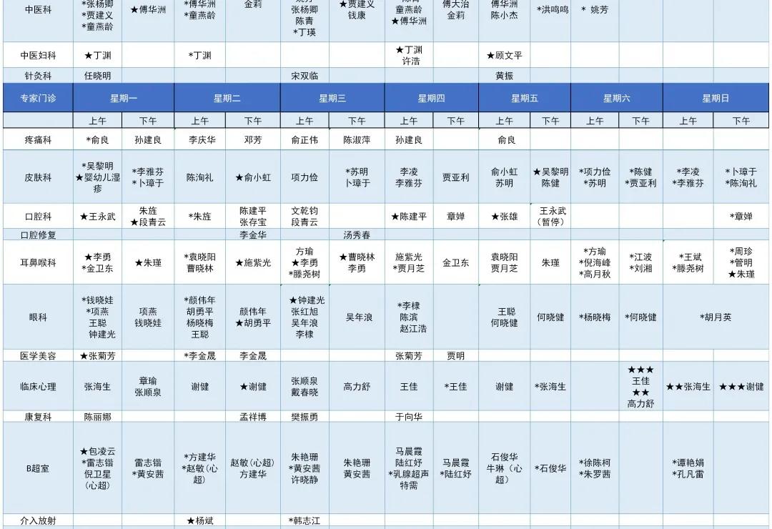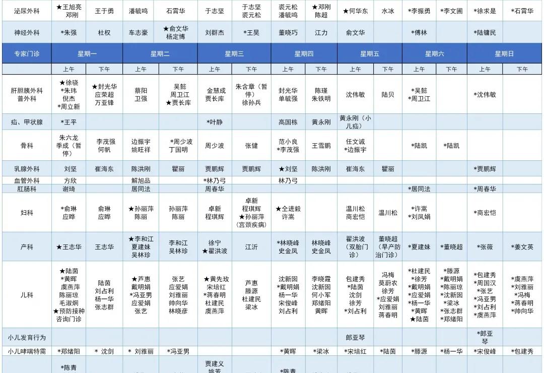 注:本专家门诊表仅供参考,最终以门诊挂号为准。