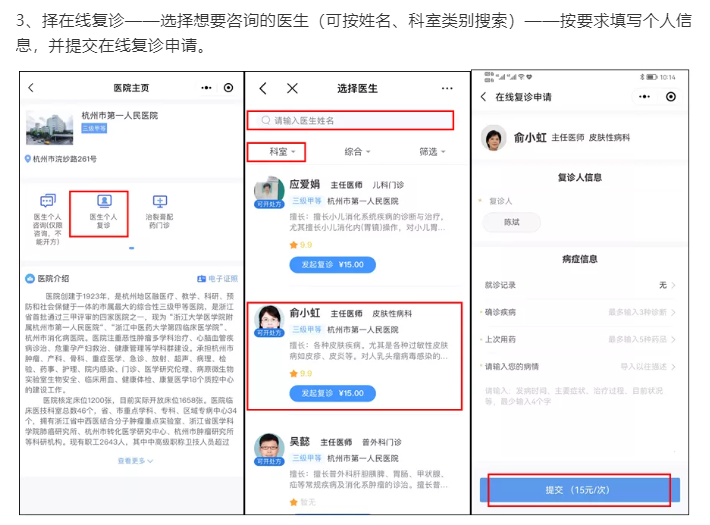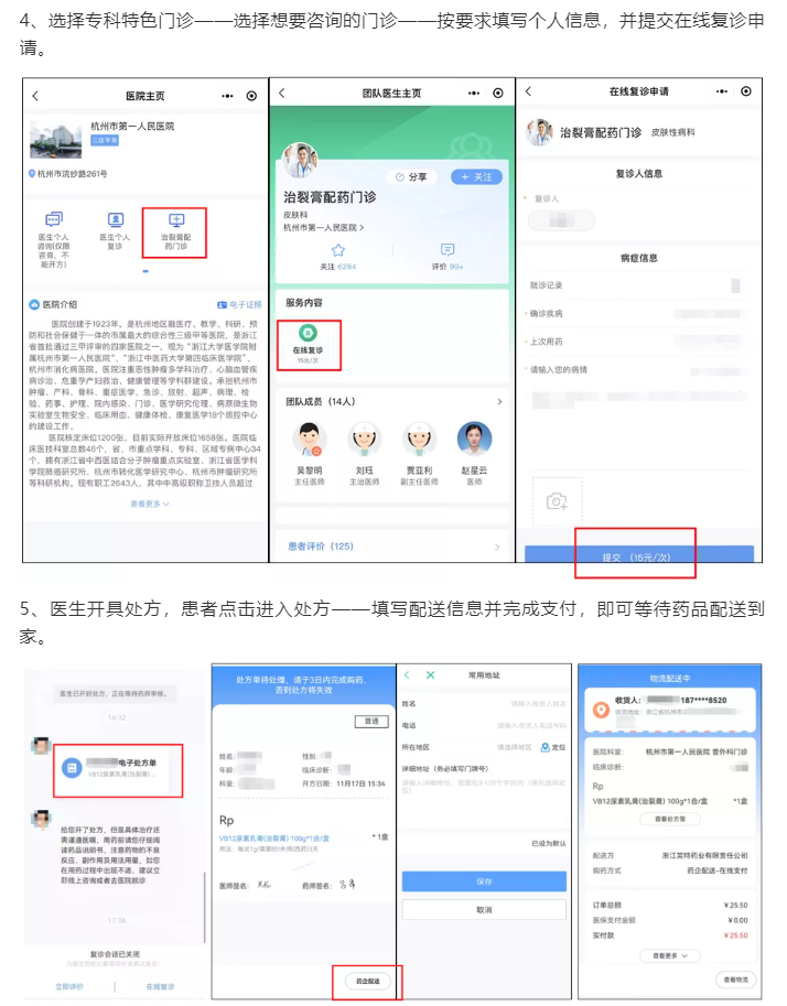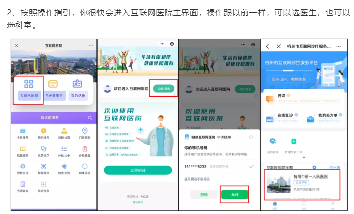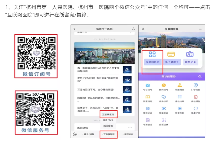 看过来看过来,互联网蜜桃直播 已在杭州市一蜜桃直播 微信公众号上正式上线了。只要有网络有手机的地方,让您足不出户,随时可以用市医保卡或自费卡在线求医复诊:在线咨询、在线复诊、在线配药、在线预约检验检查等,需要治疗的药品会通过物流送到家,杭州地区免费配送哦。疫情中为您雪中送炭。