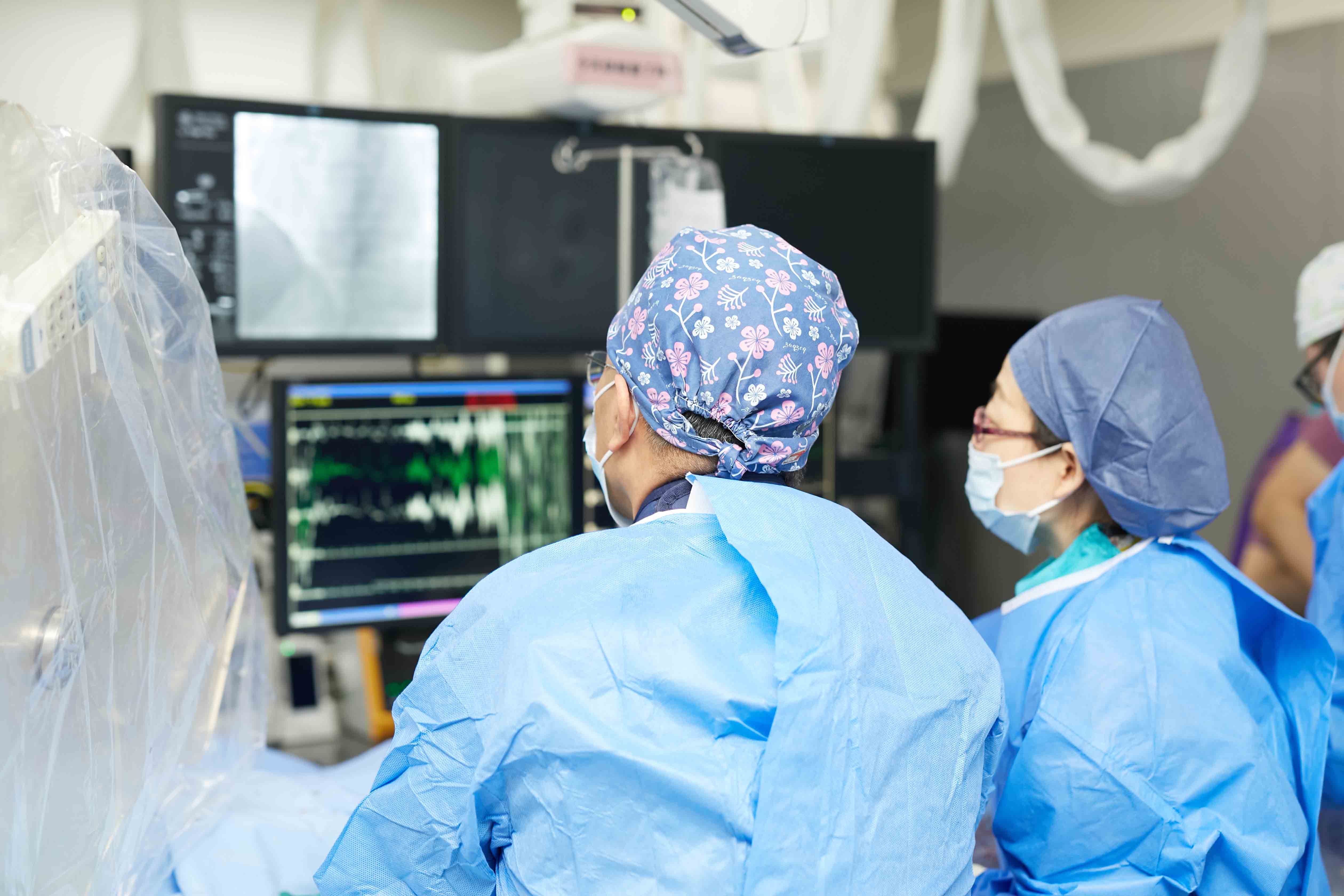 介入中心拥有3间心内科导管室,配备血管内超声仪、主动脉内球囊反博仪(IABP)、三维电生理标测系统、多导电生理仪、心肺运动仪、冷冻消融仪等先进设备。同时还设有1个心电遥测室、1个心肺运动室及1个起搏器程控室。