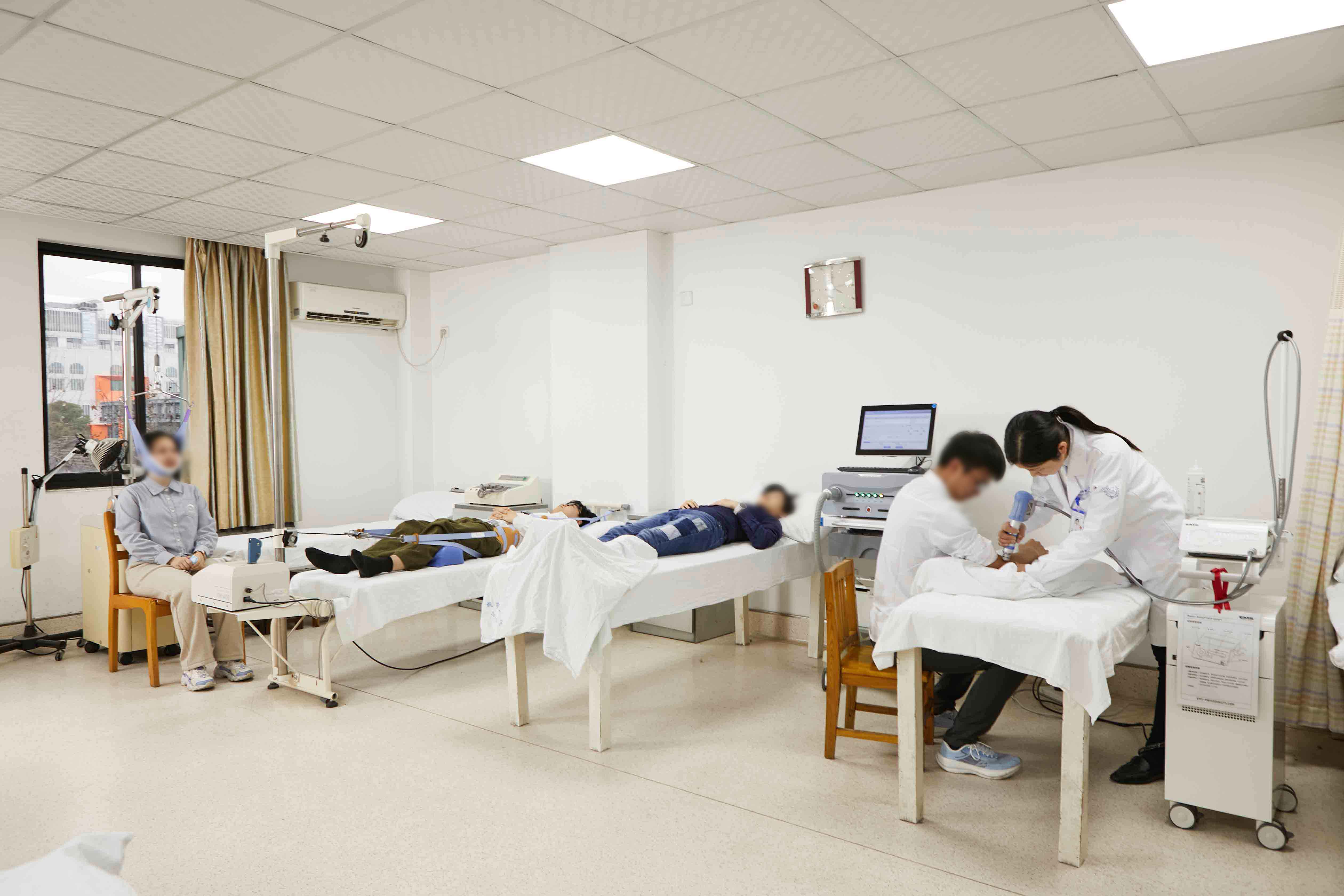 康复物理治疗设备仪器先进、齐全,拥有各种声、光、电、磁、冷、热传 统的物理因子治疗设备,包括超声波治疗仪、立体动态干扰电、肌电生物反馈、 大功率半导体激光仪、氦氖激光治疗仪、磁振热疗仪、经颅磁刺激仪、体外冲击 波治疗仪、蜡疗、中药薰药仪等。以及现代PT、OT、ST、康复工程、评估设备, 包括进口减重步态训练器、多体位升降治疗床、Bobath治疗床、电动起立床、 吞咽与言语功能治疗仪、关节肌力训练器、平衡功能训练器、颈椎牵引仪、腰椎 牵引仪、电脑多关节拉力器等康复设备。配备意大利三维步态分析系统、意大利 动静态平衡评估与训练系统、手功能康复机器人、上下肢机器人、脊柱评估与训 练系统、认知康复训练系统、智能化运动分析和训练系统、虚拟情景互动训练系 统、肌电与生物反馈训练系统、SET悬吊系统等。